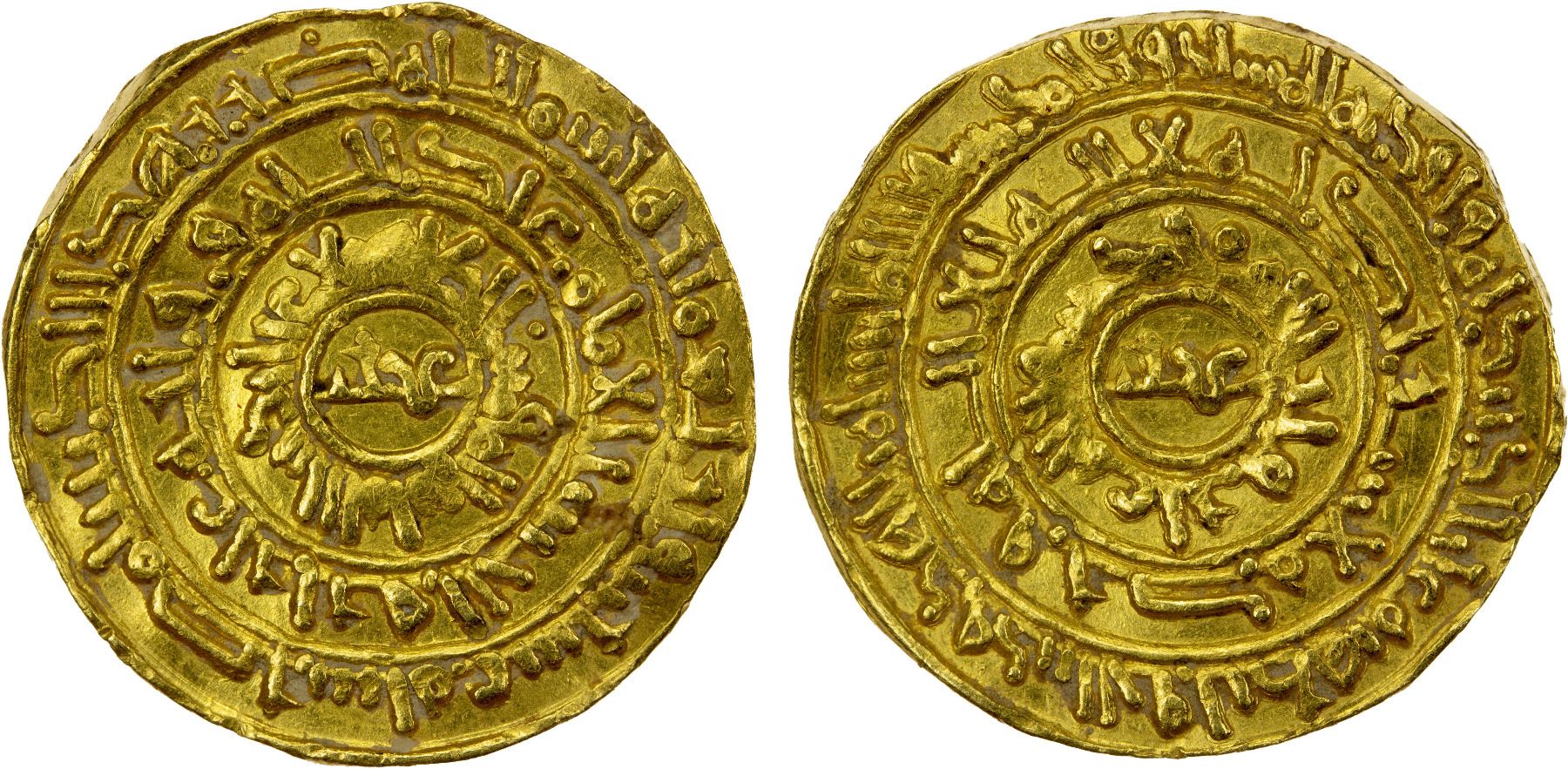 FATIMID: al-Zahir, 1021-1036, AV dinar (4.07g), Misr, AH420, A-714.2, Nicol-1524 (type H1, only 1 piece cited), three concentric circular texts on both sides, with the short word 'adl in both central circles, bold EF, RR. About 7 examples are now filed on CoinArchives.