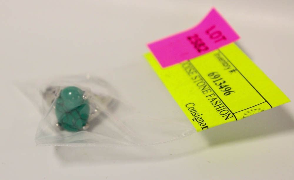 FAUX TURQUOISE STONE FASHION RING SZ18