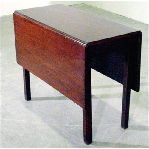 19th Century English Georgian Style Mahogany Dropleaf Table (circa 1880). A quality table with a superb finish and substantial weight to it. Opened, the table is 46.75 inches wide.