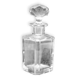 <b>262. FRANKLIN D. ROOSEVELT CRYSTAL DECANTER </b>A handsome relic from the estate of President Franklin D. Roosevelt, a heavy, square form crystal decanter with everted mouth, canted corners, and faceted crystal stopper, measuring 7 1/2" tall and 3" wide. Purchased by us from the historic Christie's Franklin D. and Eleanor Roosevelt estate sale, Feb. 15, 2001. In fine condition, ideal for display! <b>$400-500</b>