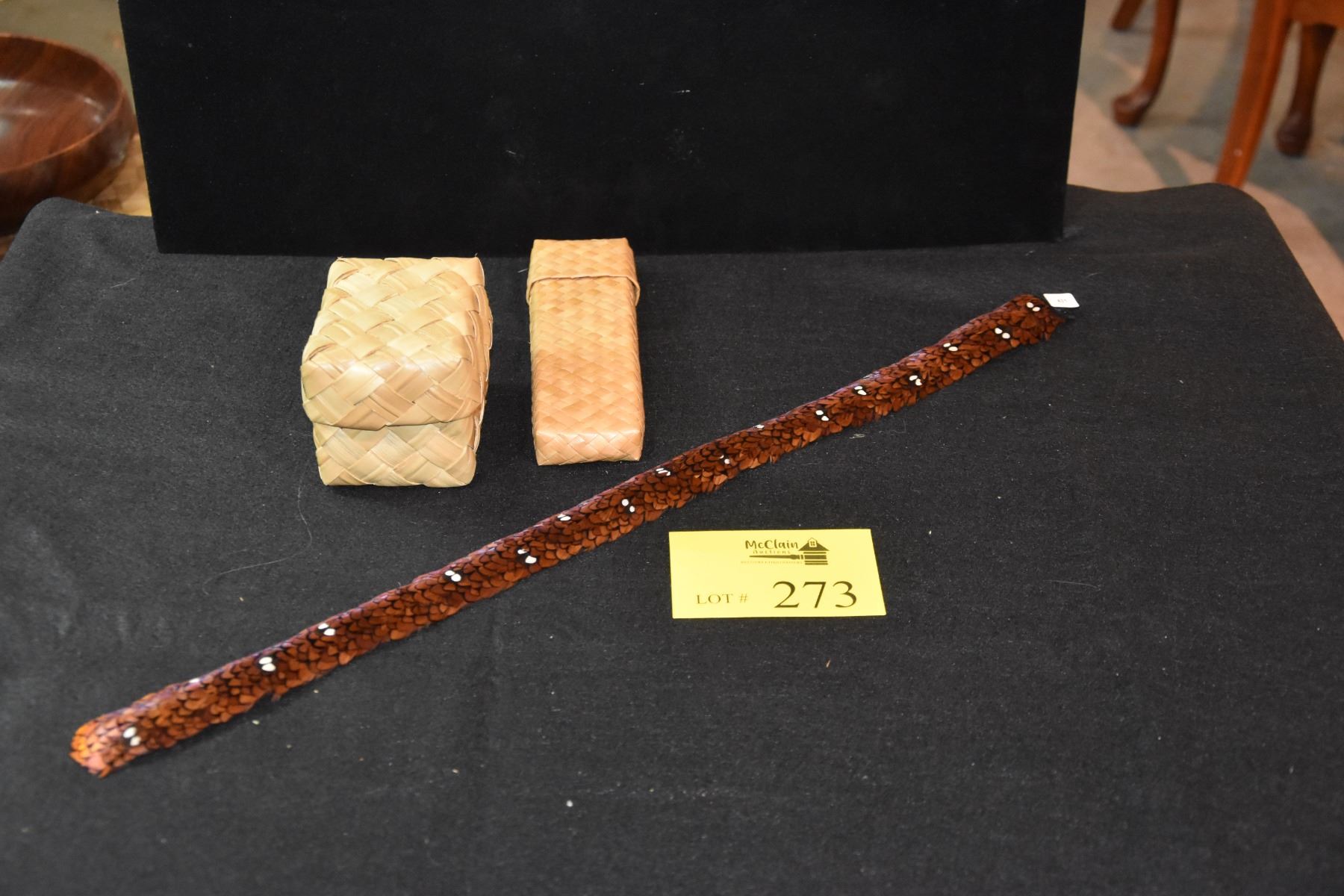 FEATHER HAT LEI & WOVEN BOXES (3 PCS)