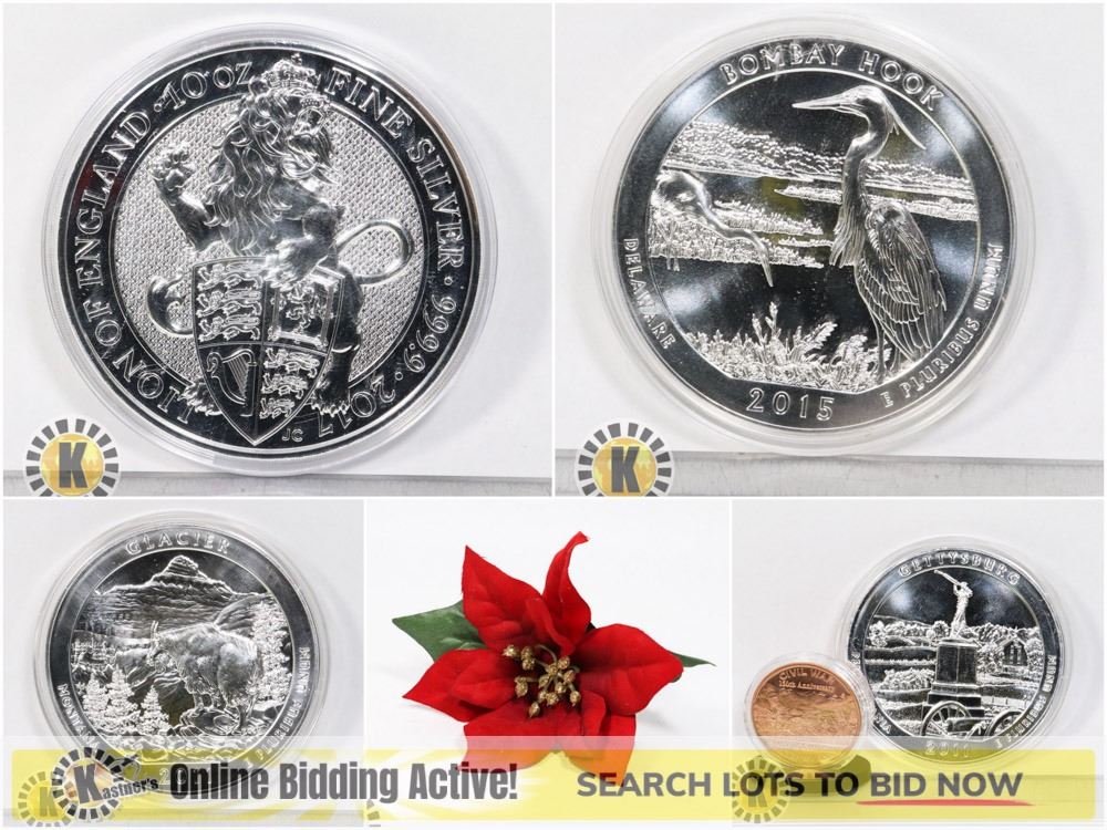 5 AND 10-OZ SILVER! LOTS 4003,4044-4046