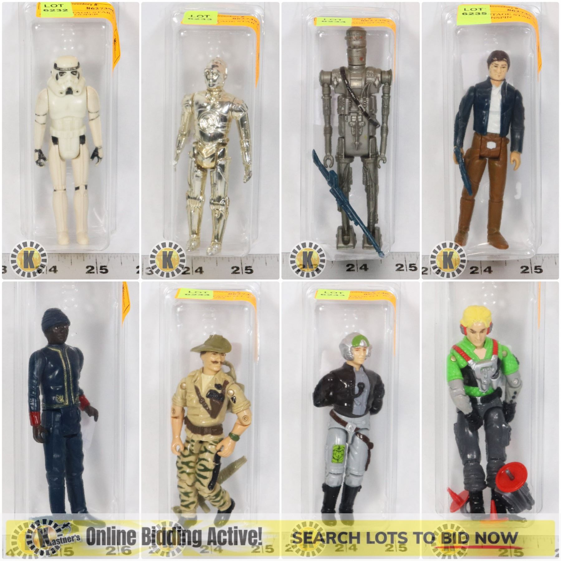 VINTAGE STAR WARS + GI JOE FIGURES IN PROTECTIVE BUBBLE PACK! LOTS 6232-