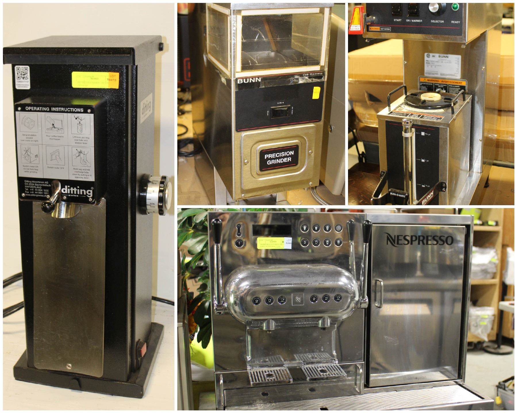 TO BID, GO TO LOTS: THERMOPLAN NESPRESSO 8001, BUNN COFFEE BREWER: 8008, BUNN COFFEE GRINDER: 8012, DITTING COFFEE GRINDERS: 8070 & 8071, & MANY MORE THROUGHOUT THE AUCTION