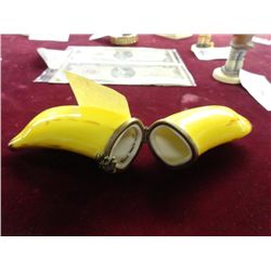 Porcelain Banana Shaped Trinket Box w/Monkey Clasp - Limoge-France