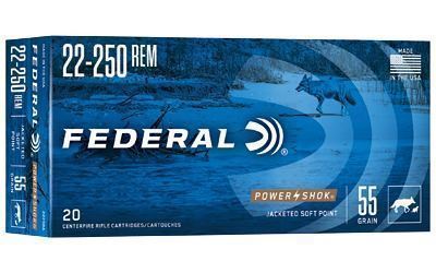 Federal, PowerShok, 22-250, 55 Grain, Soft Point, 20 Round Box