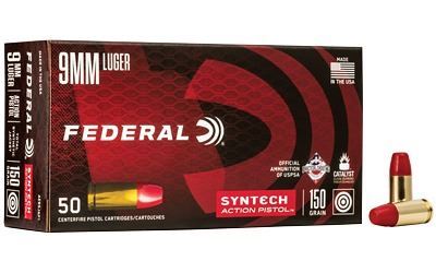 Federal, Syntech Action Pistol, 9MM, 150Gr, Total Synthetic Jacket, 50 Round Box