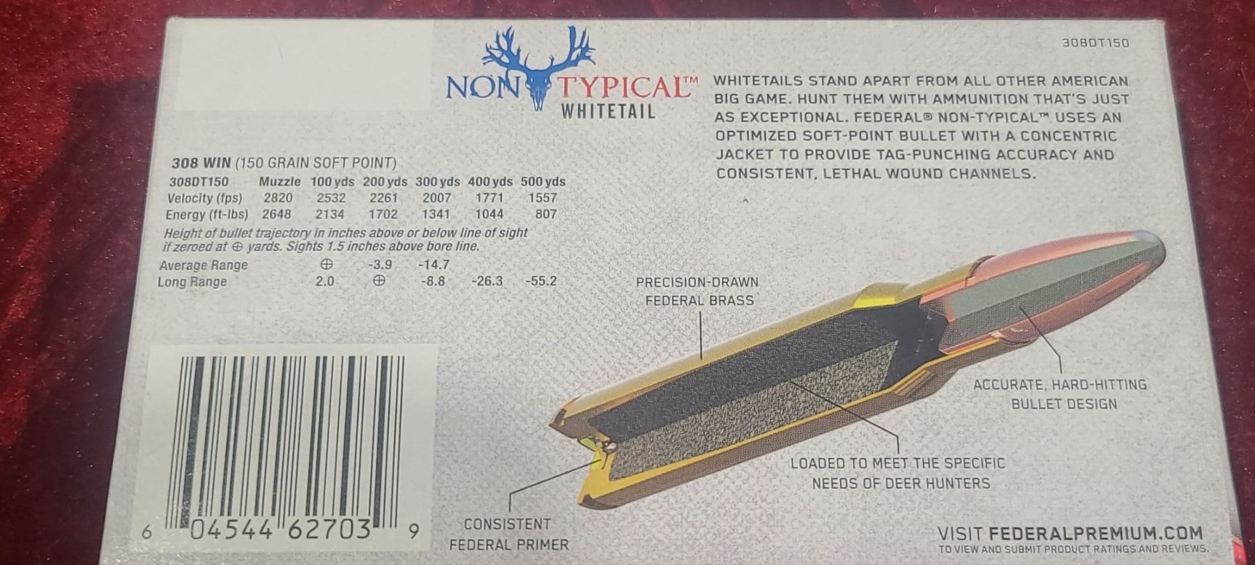 FEDERAL .308 150GR - NON TYPICAL WHITETAIL SOFT POINT