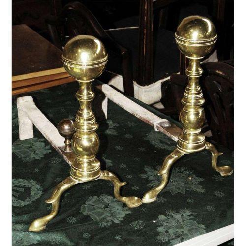 1 FEDERAL BALL TOP ANDIRONS lacking one log stop 17" high