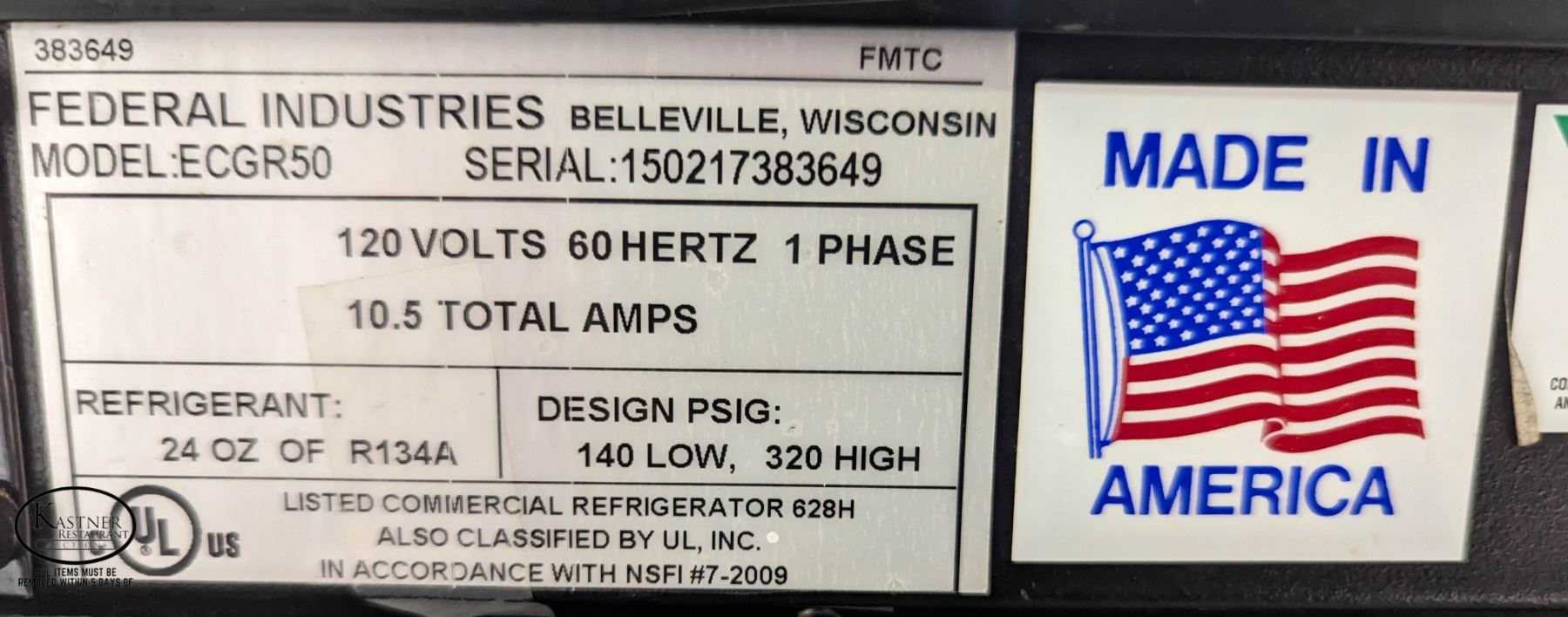 MODEL: ECGR50. 120V, SINGLE PHASE, 10.5A. 50" X 35" X 54" **ALL ITEMS MUST BE REMOVED BY 4:00PM, JULY 21ST, 2023. ALL ITEMS REMAINING AFTER 4:00PM, JULY 21, 2023 WILL BE CONSIDERED FORFEITED WITH NO REFUNDS TO THE BUYER WHATSOEVER. ALL ITEMS IN THIS AUCTION ARE SOLD IN UNTESTED CONDITION, DUE TO THE NATURE OF ONSITE AUCTIONS, WE ARE UNABLE TO TEST ITEMS PRIOR TO THE AUCTION. ABSOLUTELY NO REFUNDS WILL BE CONSIDERED FOR THIS AUCTION UNDER ANY CIRCUMSTANCE. WE RECOMEND TAKING ADVANTAGE OF VIEWING ON JULY 16TH, FROM 10:00AM UNTIL 4:00PM. PICK-UP IS AVAILABLE FROM JULY 18TH, UNTIL JULY 21ST, 10:00AM TO 4:00PM.
