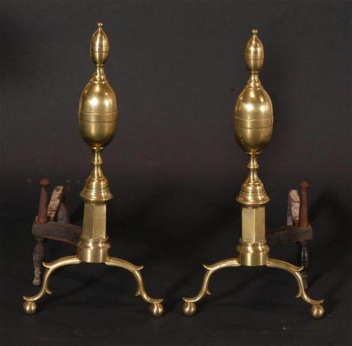 FEDERAL DOUBLE LEMON ANDIRONS, 24 1/2" high early 19th century, condition: excellent, SHIPPING: See recommended third party shippers. This item can't be packed or shipped by seller.
