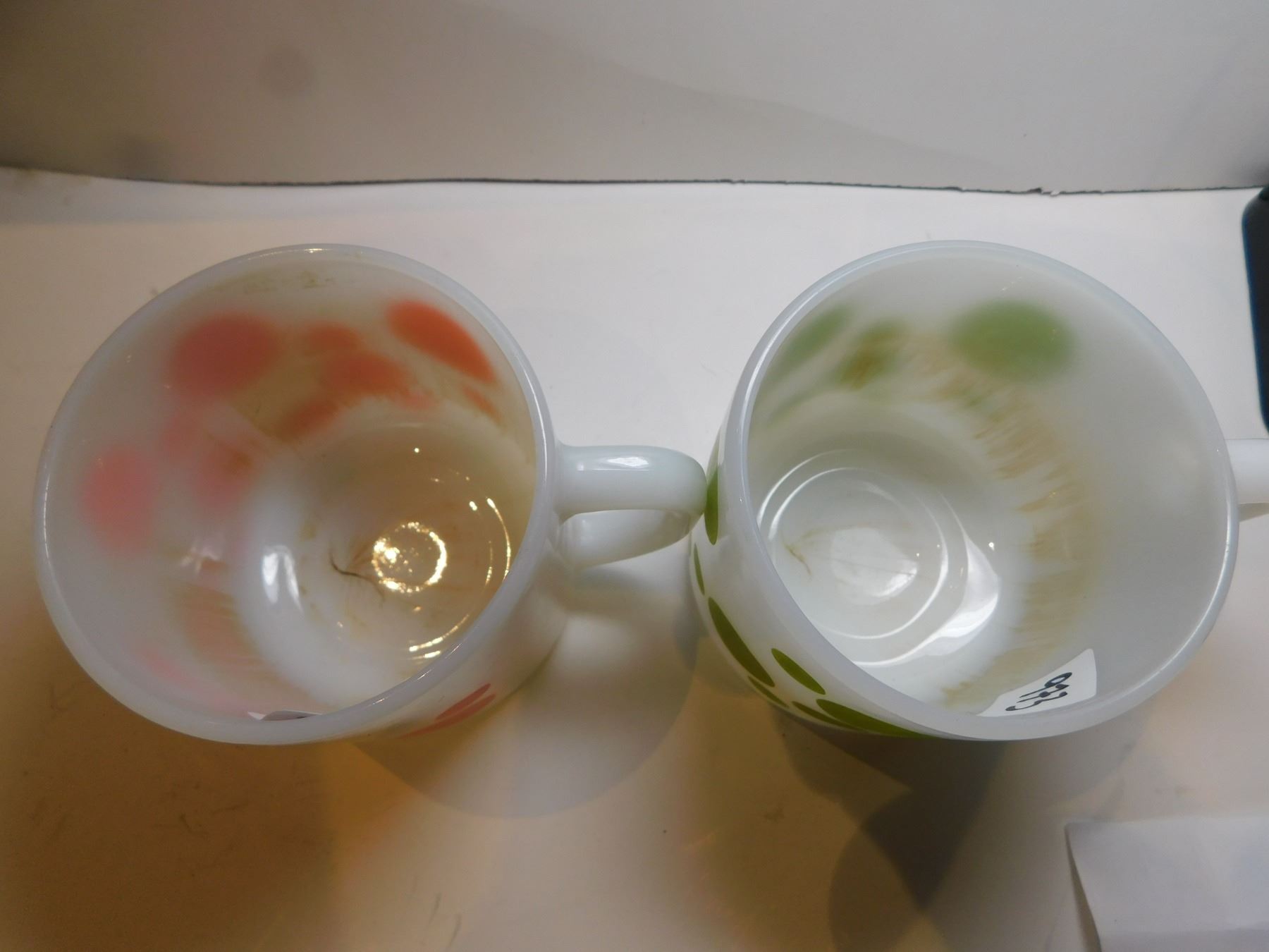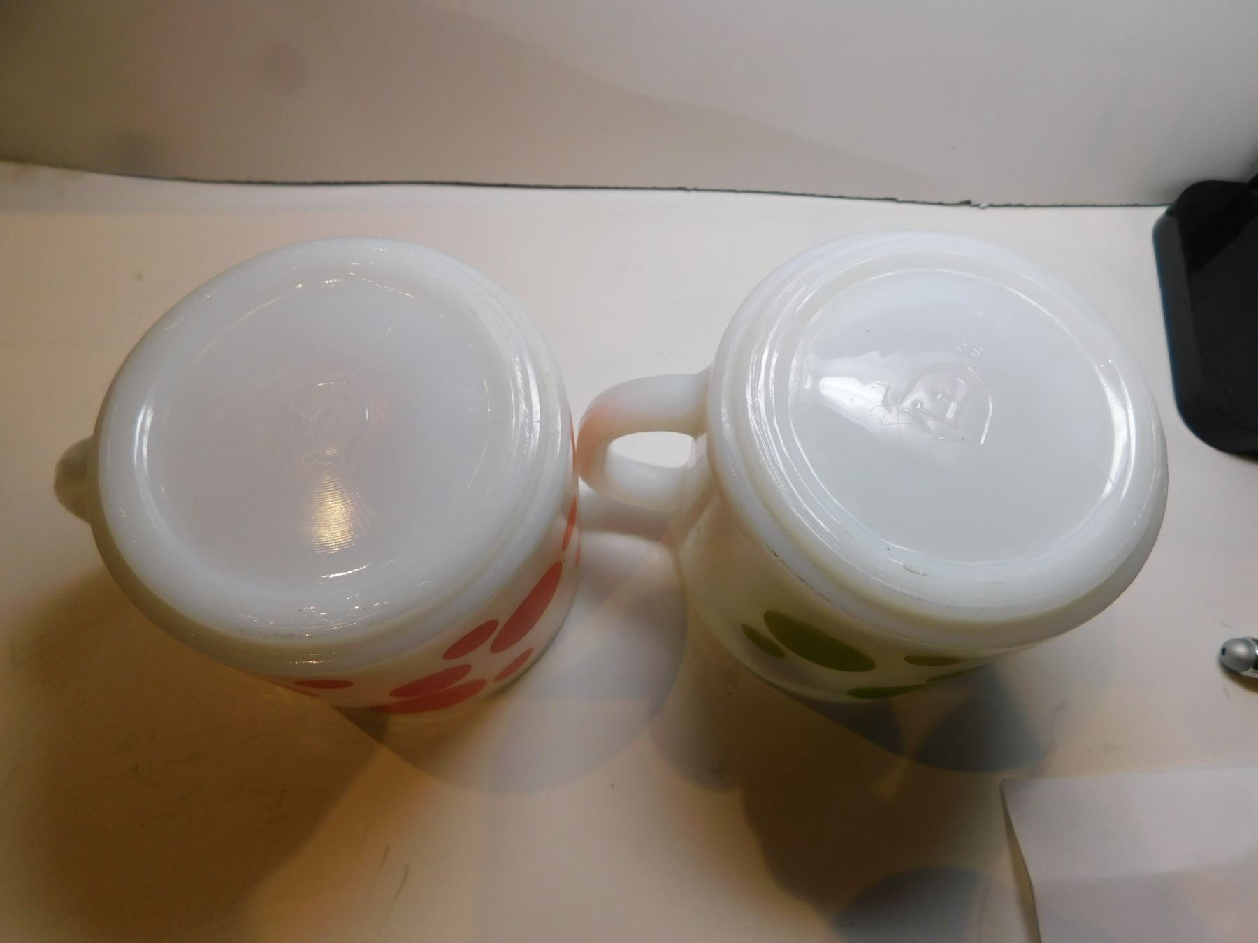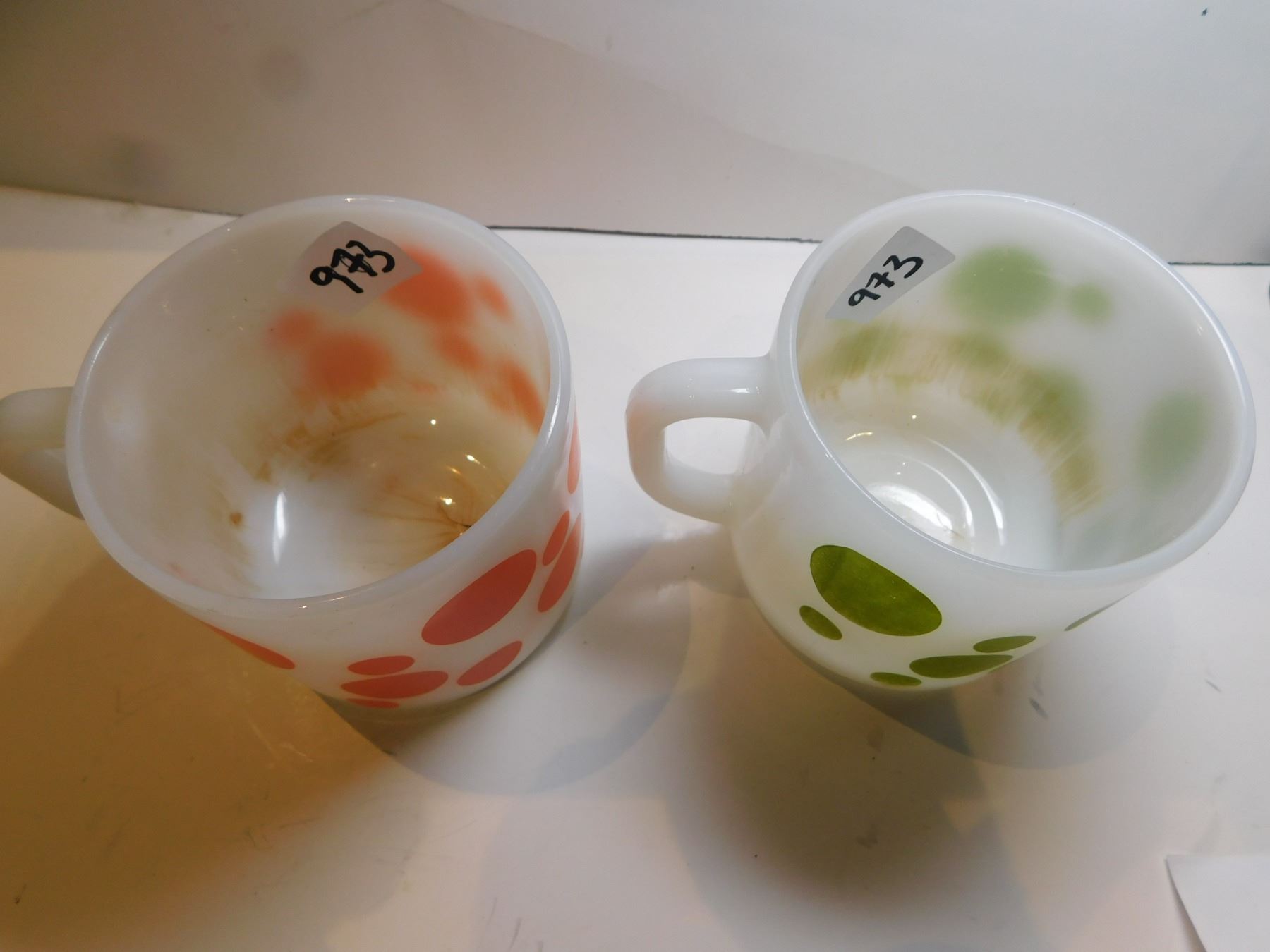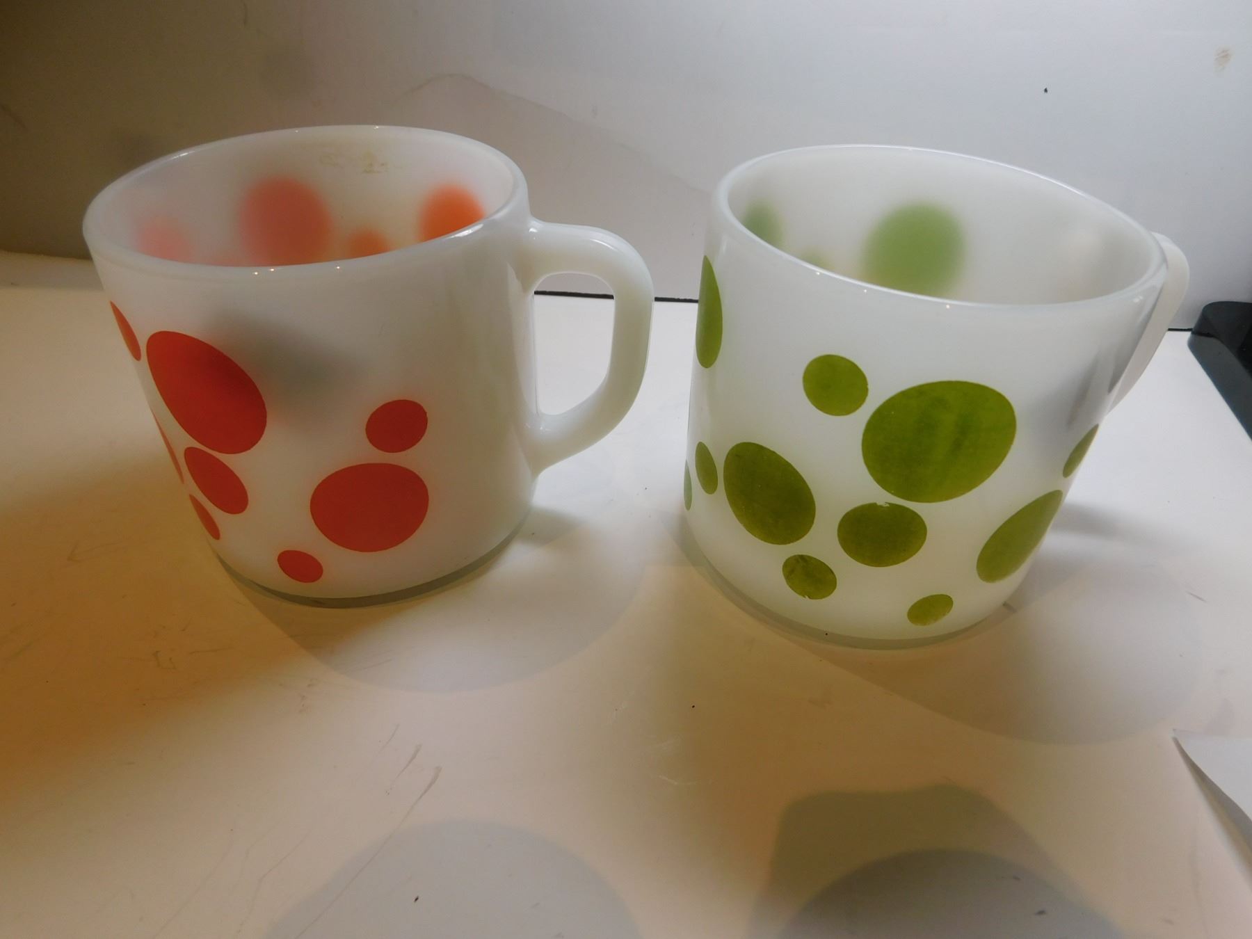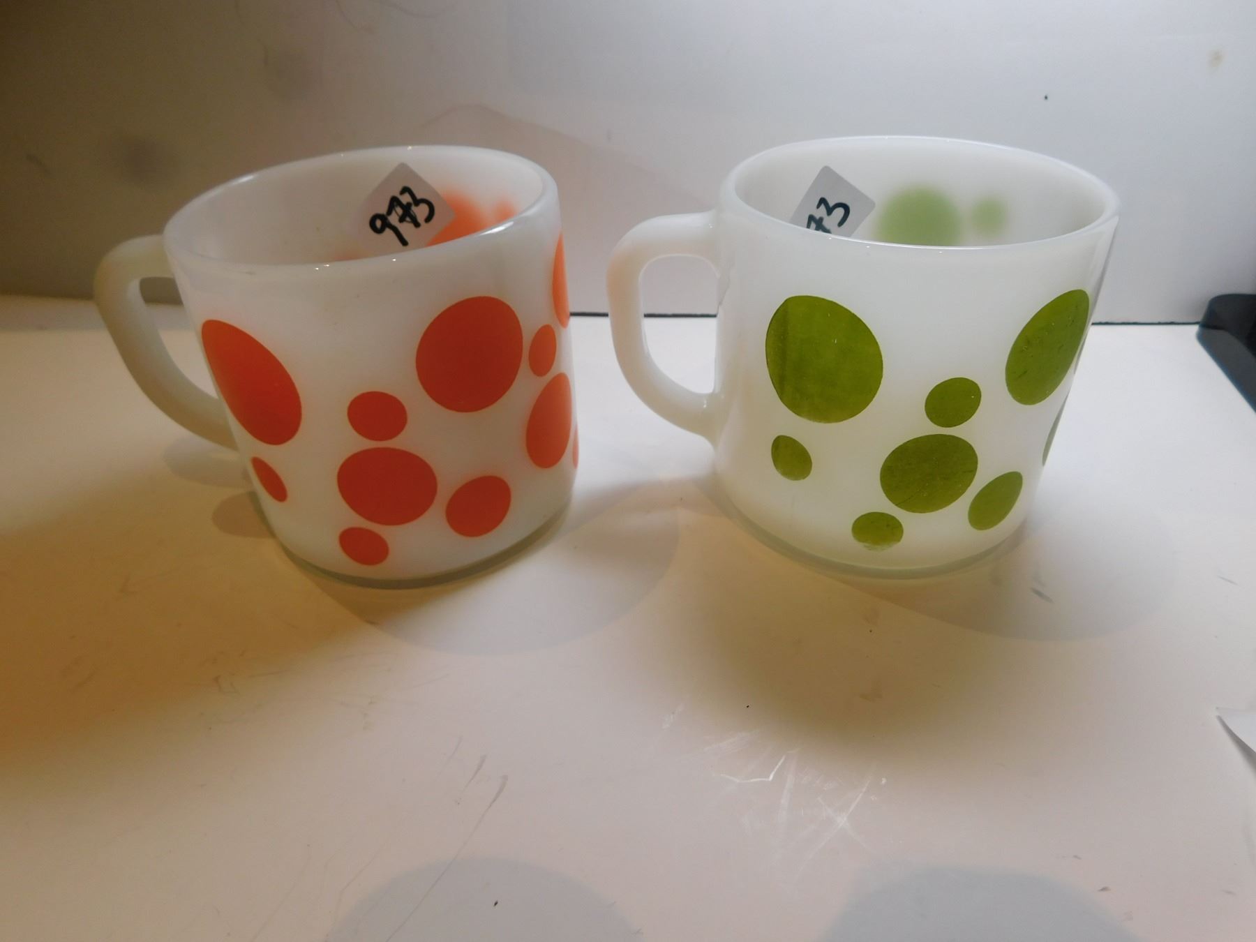 FEDERAL GLASS DOT MUGS, GREEN AND ORANGE