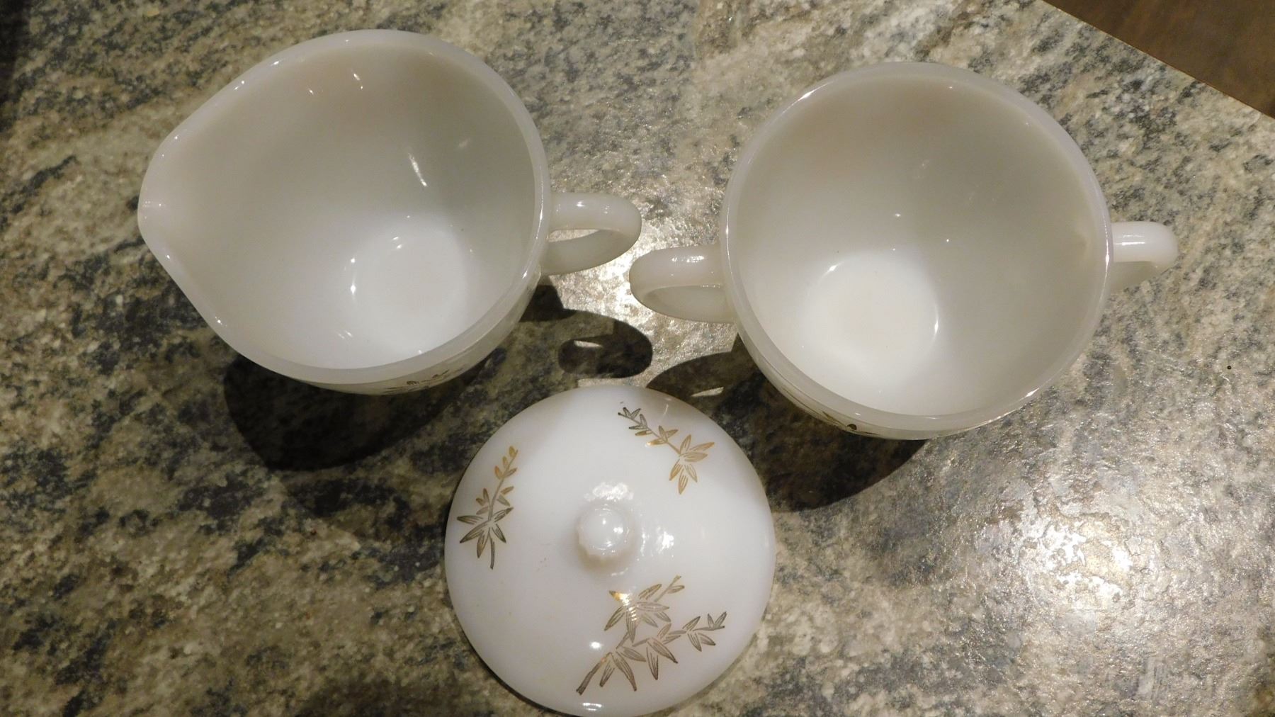 FEDERAL GLASS, GOLDEN BAMBOO, LIDDED SUGAR AND CREAM SET