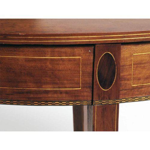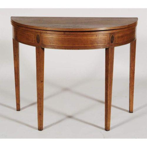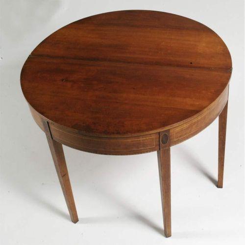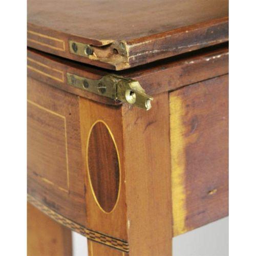 FEDERAL INLAID CHERRYWOOD CARD TABLE 36" wide, 17 1/2" deep, 28" high, circa 1810 circa 1810, CONDITION REPORT: top detached and hinges broken, otherwise very nice and good color.
