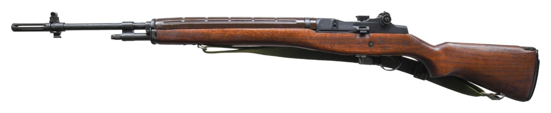 Cal. 7.62x51. S# 6140. Bbl. 25" barrel including flash suppressor. Barrel is marked on the right side "TRW 9 63". T105E1 aperture rear sight. Blade front sight w/ protective ears. Bolt is electro-penciled to match only w/ drawing number. Operating rod marked "HRA". Trigger housing marked "OM-N". Hammer marked "TRW". Bayonet lug is present. Gas cutoff is functional. Factory refinished GI walnut stock w/ faint defense acceptance eagle & encircled "P" proof under grip. Brown fiberglass handguard. Green web sling. MAGS: five GI issue 20 round magazines. UNATTACHED ACCESSORIES: matching cardboard shipping box. CONDITION: PROVENANCE: reprinted U.S. Army operator's manual by Desert Publications & a fired cartridge case w/ its headspace check tag. (25-4796/RW). MODERN. $1,000-1,500.