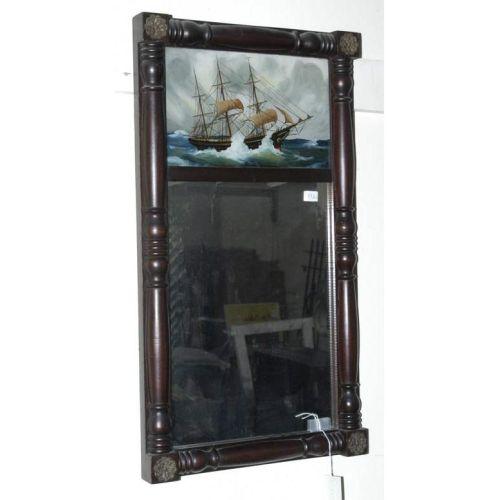 FEDERAL STYLE 2-PART MIRROR, with ship painted under top glass, CONDITION REPORT: no problems.