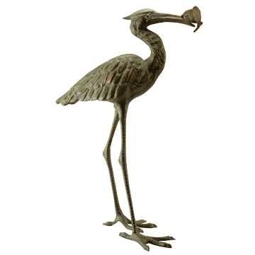 FEEDING CRANE GARDEN SCULPTUR - E26"H X 17"W X 9.5"D - CAST IRON GARDEN SCULPTURE