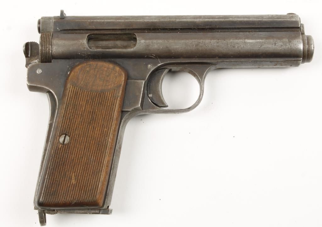 Hungarian single action semi-automatic pistol. Comes with (1) magazine. Wood grips are slightly worn. Bluing is worn and faded with high edge wear and some surface rust spots. Bore is dark. Action is good. Condition is fair. *MUST BE REGISTERED*