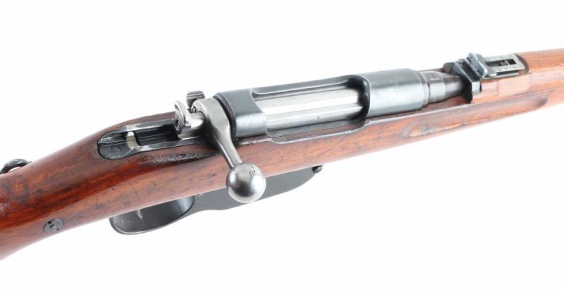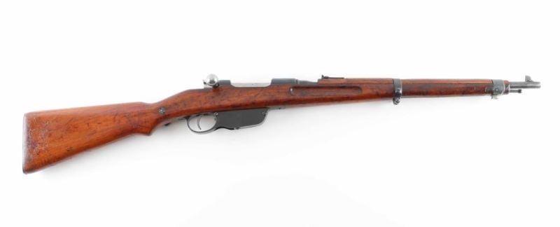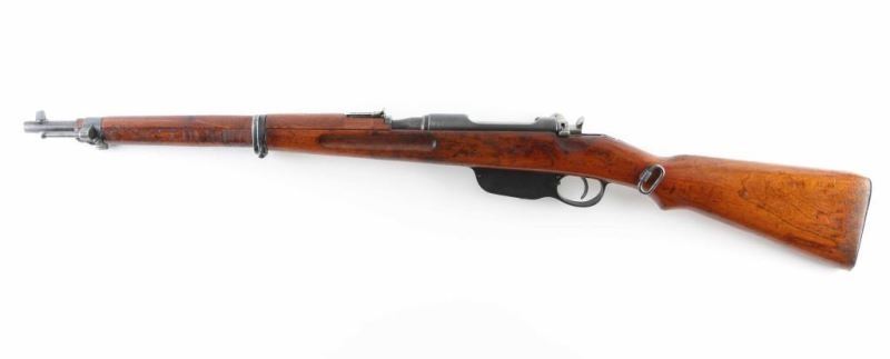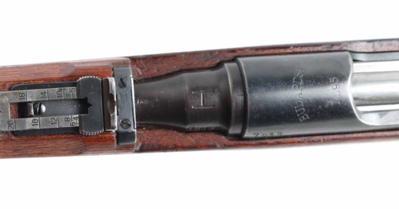 Austro-Hungarian made straight pull bolt action military rifle imported by CAI, Georgia VT. Features blued finish, 19-3/4" barrel, stacking hook, bayonet lug, side mounted sling swivels, blade front sight, folding ladder rear sight, manual safety. Matching serial numbers on all stamped parts and the wood stock, with previous stock number on opposite side visible. Bore is fair, showing pitted grooves and strong rifling. Retains 80% arsenal re-blue with losses on edges. Bolt assembly is very good condition bare metal. Buttplate is chrome plated. Barrel stamped "Budapest" with an "H" stamp for using a pointed bullet. Action works well. Stock is good condition, varnished, many small dings and scratches throughout, row of dents along left side of forend. Condition is NRA Very Good (arsenal rebuilt) *** C&R Firearm ***
