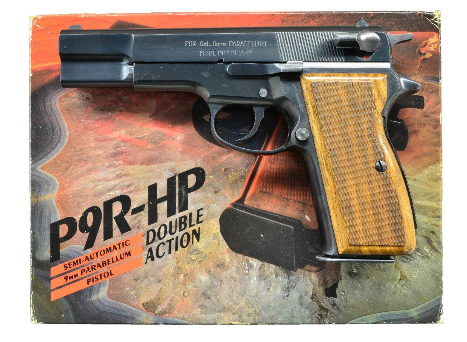Cal 9mm Para. S #R26783. Bbl. 4 1/2". Double action semi auto pistol. Safety w/ decocker. Blade front sight. Fixed U-notch rear sight. CAI import marking on right side of slide. Checkered grips. Blue finish. MAGS: 2-13 rd. UNATTACHED ACCESSORIES: box w/ styrofoam inserts both numbered to gun, manual & cleaning rod. CONDITION: grips rate near excellent. Metal retains 98% original blue. Very good plus bore. (22-4354/MJC). MODERN. $400-600.