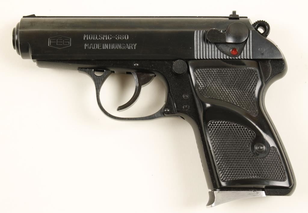 Blued double-action semi-automatic pistol with a 3-1/2" barrel and two magazines. Finish is very good. Bore is bright and shiny with sharp rifling. Grips are in fine condition. Action functions well with de-cocker safety. Condition is near fine. *Modern Firearm*