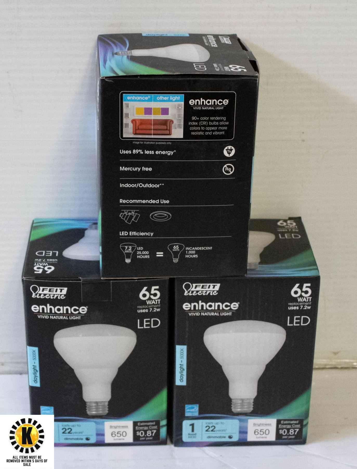 THESE FEIT ELECTRIC 5000K DAYLIGHT LED BULBS WILL PROVIDE ALL THE BENEFITS OF ADVANCED LED ENERGY-SAVING TECHNOLOGY. THEY WILL REPLACE 100-WATT EQUIVALENT INCANDESCENT BULBS WHILE ONLY USING 17.5 WATTS