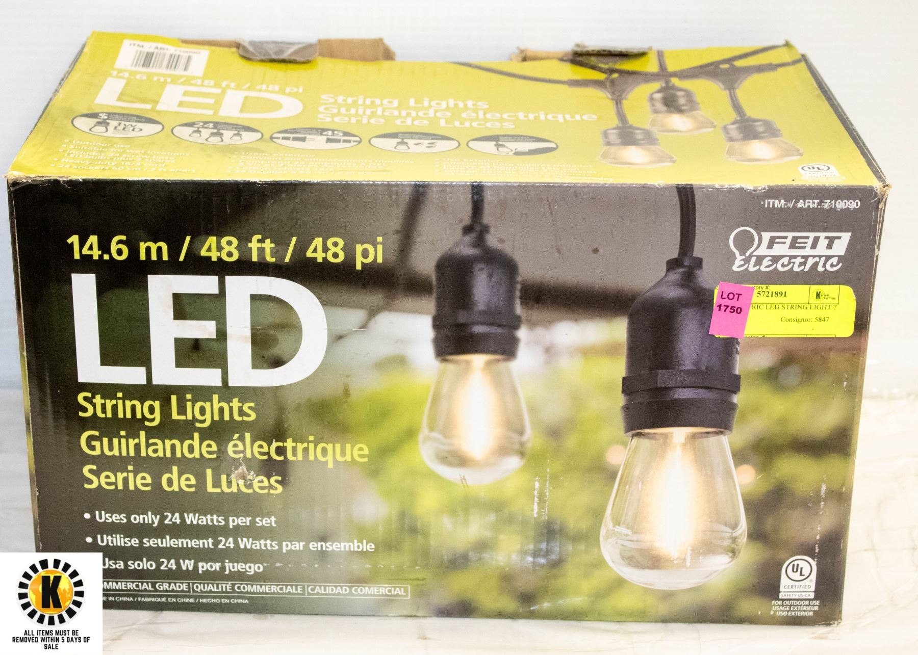 FOR INDOOR OR OUTDOOR USE, SUITABLE FOR WET LOCATIONS, FILAMENT LED BULBS 2200K SHATTER RESISTANT BULBS, HEAVY-DUTY 16/3 CORD 24 SOCKETS 2FT APART 1 WATT LED BULBS **ALL ITEMS MUST BE REMOVED BY 5PM SATURDAY, NOVEMBER 4TH 2023. ALL REMAINING ITEMS WILL BE SUBJECT TO A $6.00 PER DAY STORAGE CHARGE. ANY ITEMS REMAINING AFTER MONDAY, NOVEMBER 18TH, 2023 WILL BE CONSIDERED FORFEITED. NO REFUNDS WILL BE ISSUED FOR FORFEITED ITEMS. TO SCHEDULE A PICK UP APPOINTMENT CLICK HERE