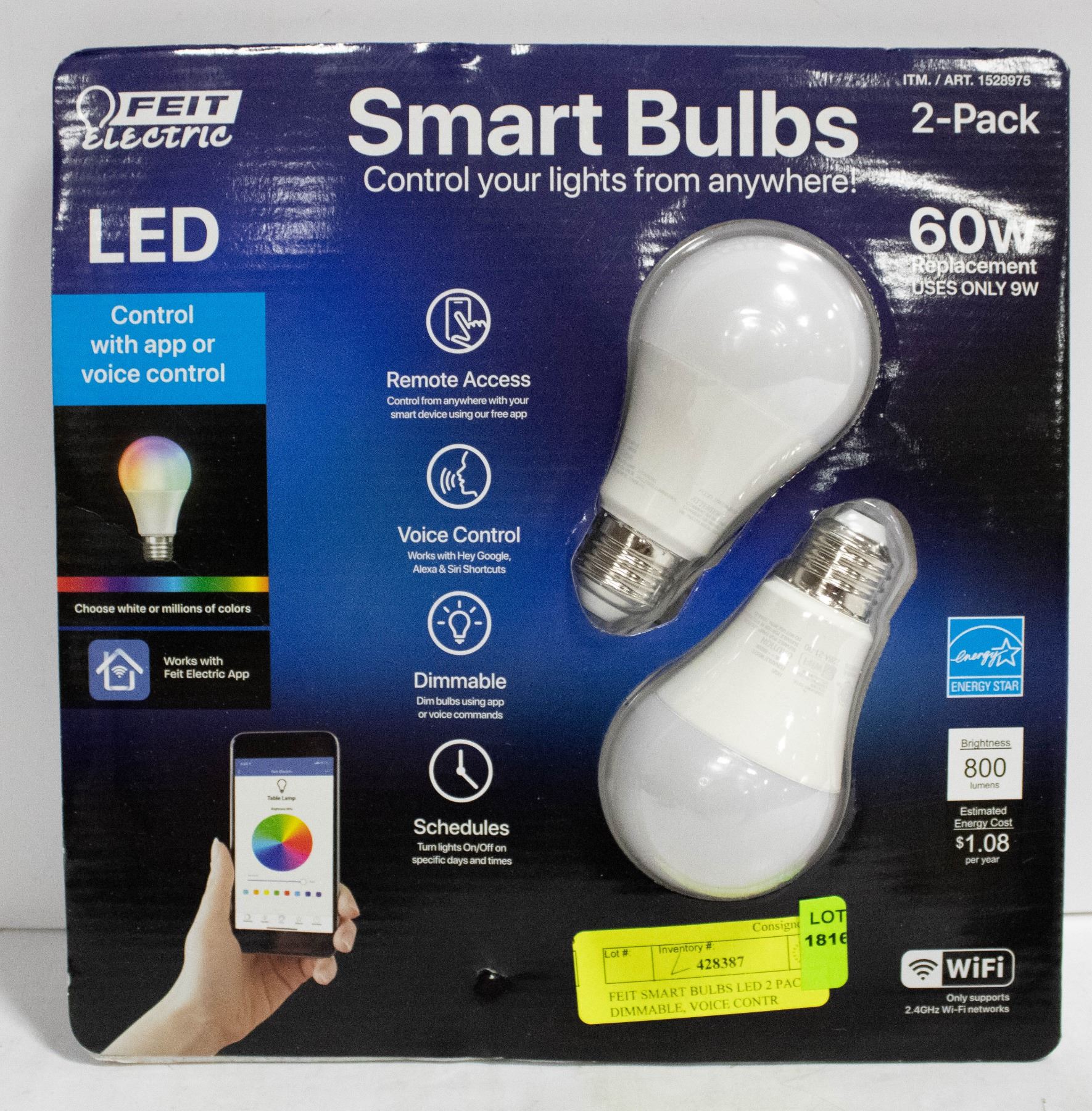 FEIT SMART BULBS LED 2PK, DIMMABLE, VOICE CONTROL