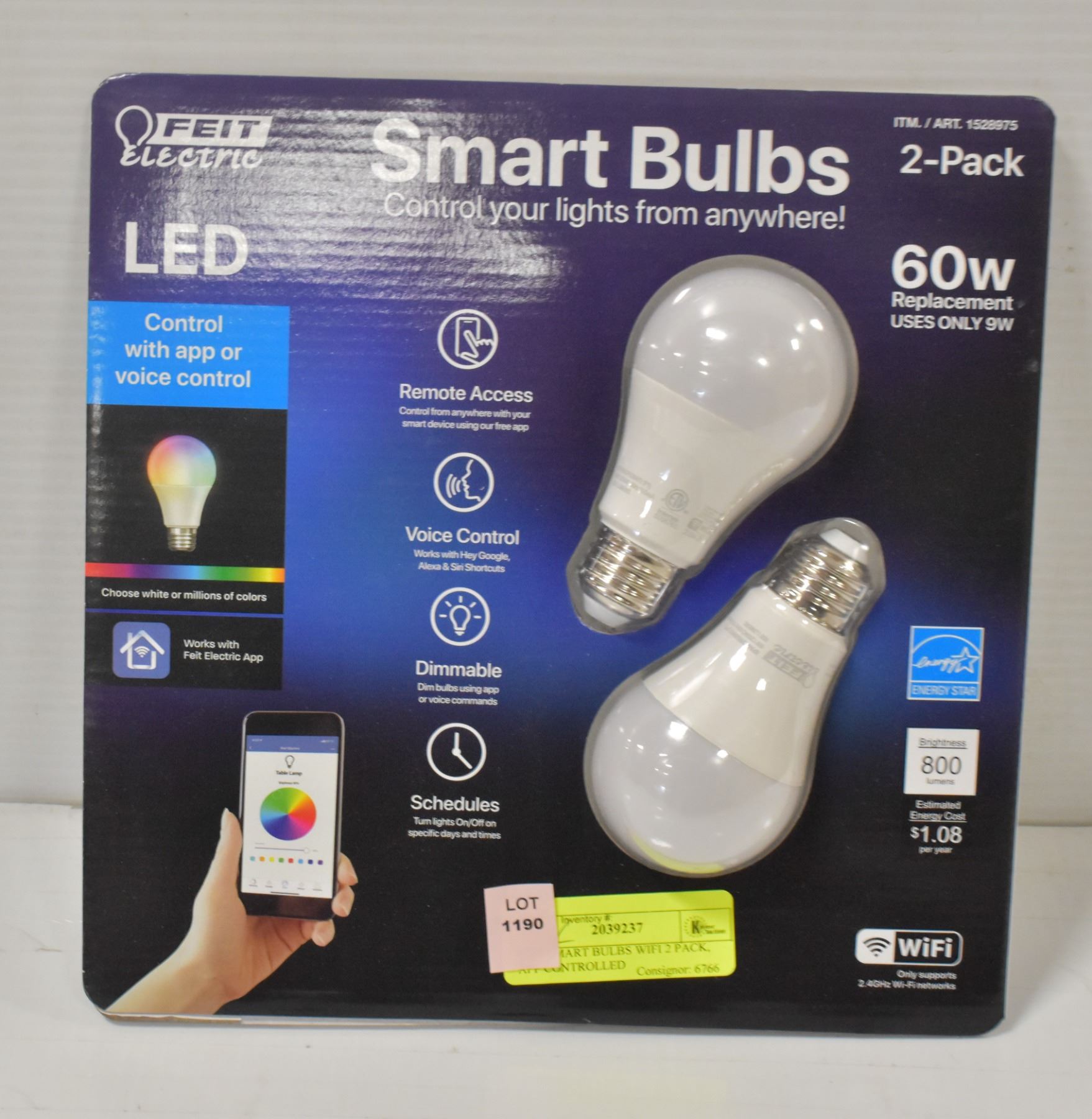 CAN SET TIMER, BRIGHTNESS & MORE REMOTELY FROM FEIT APP. ALSO WORKS WITH GOOGLE, SIRI, & ALEXA **ALL ITEMS MUST BE REMOVED BY 5PM MONDAY, OCTOBER 24, 2022. ALL REMAINING ITEMS WILL BE SUBJECT TO A $6.00 PER DAY STORAGE CHARGE. ANY ITEMS REMAINING AFTER MONDAY, NOVEMBER 14, 2022 WILL BE CONSIDERED FORFEITED. NO REFUNDS WILL BE ISSUED FOR FORFEITED ITEMS. TO SCHEDULE A PICK UP APPOINTMENT CLICK HERE