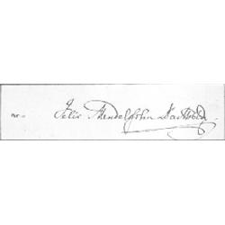 <b>1398. FELIX MENDELSSOHN </b>(1809 - 1847) German composer of symphonies, concertos, and operas, well known for his overture "A Midsummer Night's Dream". Bold signature "<i>Felix Mendelssohn-Bartholdy</i>" penned on a small sheet. Attractively framed with a portrait engraving of the composer, and set into a carved gilt frame. An attractively example, perfect for display.<b> $300-400</b>