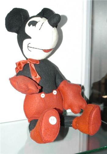 FELT MICKEY MOUSE DOLL, 15" high seated, tag torn otherwise very good. PACKING AND SHIPPING excl. insurance w/i Contintental U.S. $20 excluding insurance within Continental U.S., multiple lots can be combined at a discount.