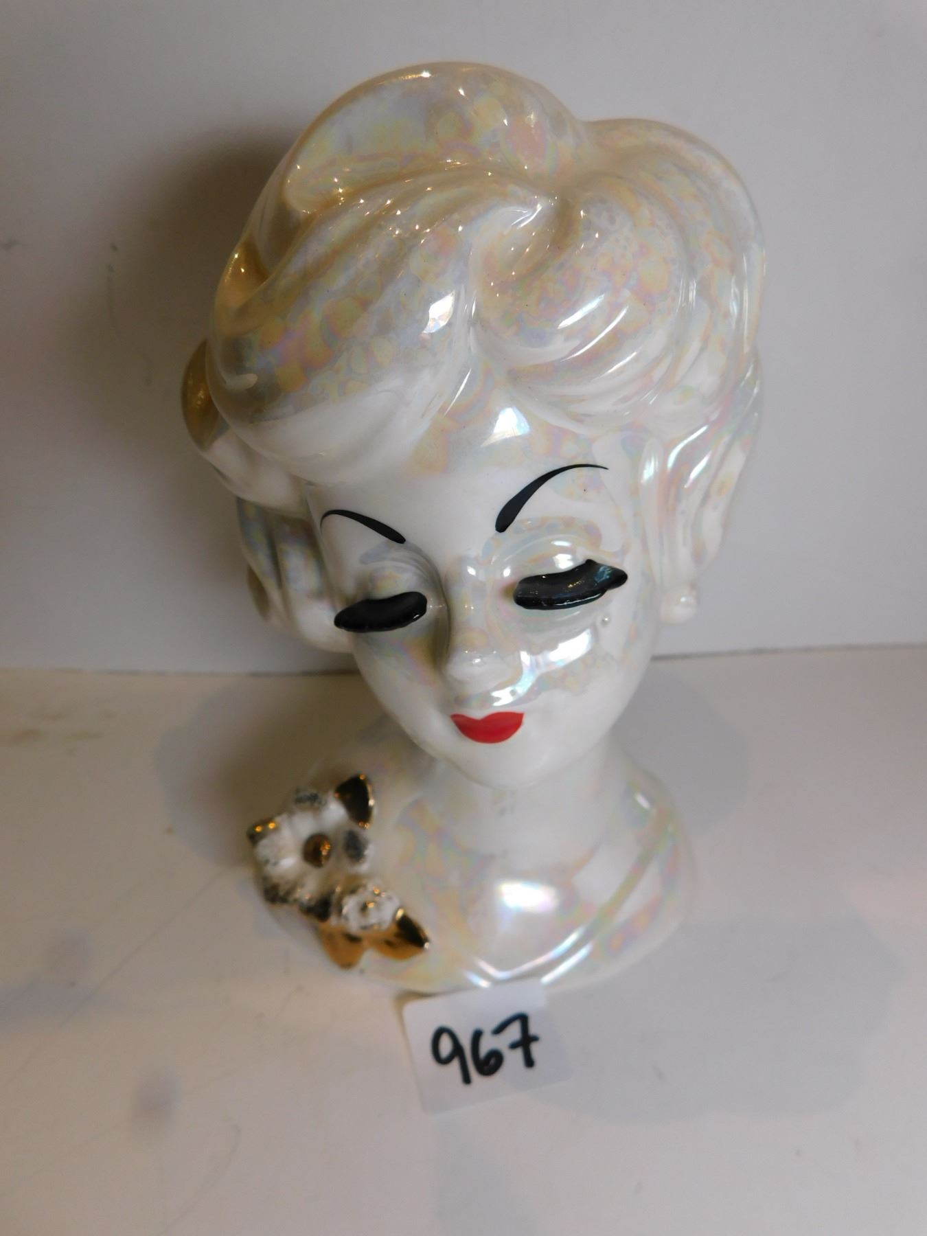 FEMALE HEAD VASE NORCREST JAPAN, WHITE LUSTRE
