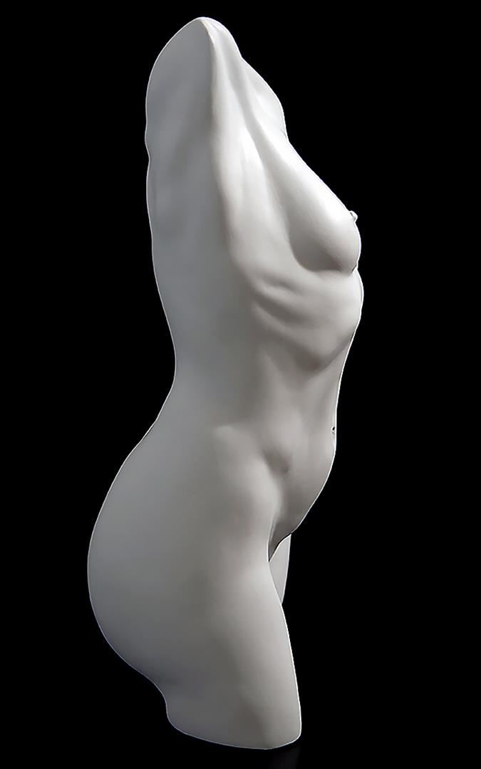 Sculpture, cast hydocal and acrylic by Charles Lynn Bragg. A 1/3 lifesize, free standing female torso. 9 x 18 x 7. Weight 25 lbs.