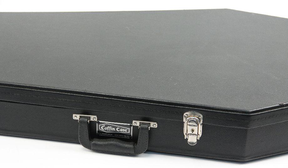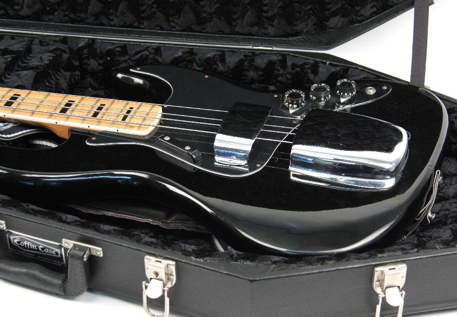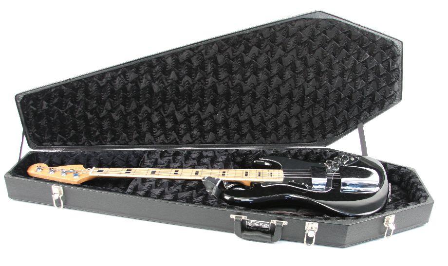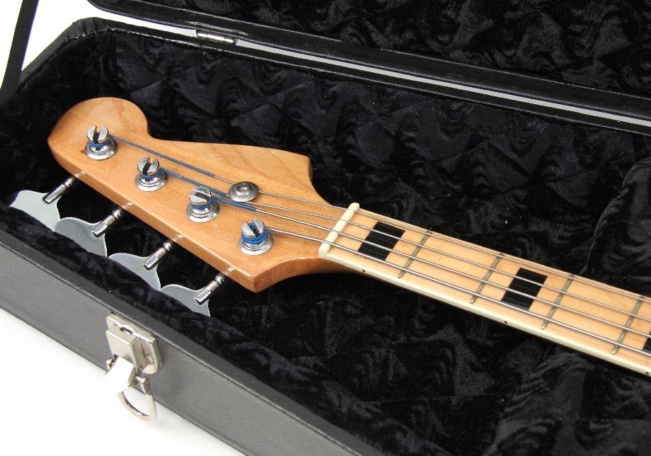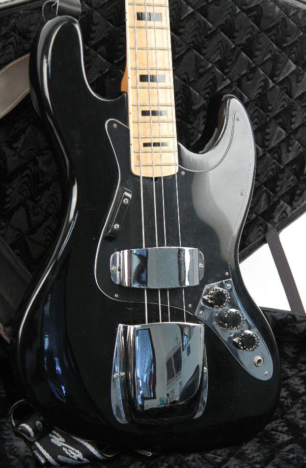 Fender jazz bass copy. Has customized fret markers. Overall good condition. Also included is a Coffin Case in very good condition.