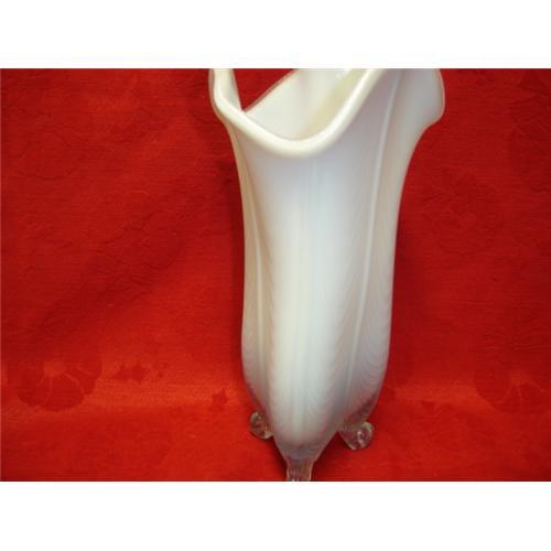 MY CAMERA DIDN'T DUE A GOOD PICTURE OF THIS BEAUTIFUL VASE. IT A LIGHT BLUE VASE, 10 INCHES TALL AND HAS RIBS ON THE SIDES. THREE LEGGED BOTTOM AND IS SIGNED ON BOTTOM 100 YEARS. FENTON ONLY MADE FEW VASES IN THIS COLOR.IT WILL VERY, COLLECTIBLE LATER ON DUE TO ITS COLOR...