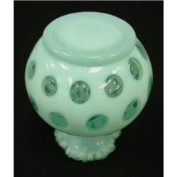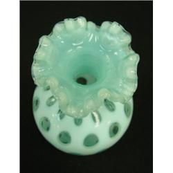 FENTON Blue Opalescent Coin Dot vase. Circa 1947-50. 7" tall. Condition: Excellent