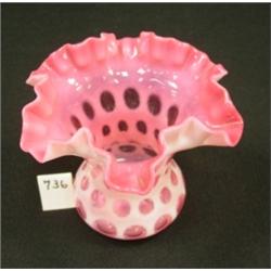 FENTON Cranberry Coin Dot 6" Vase #1925. Ruffled edge, Pre-1970. Condition: Excellent