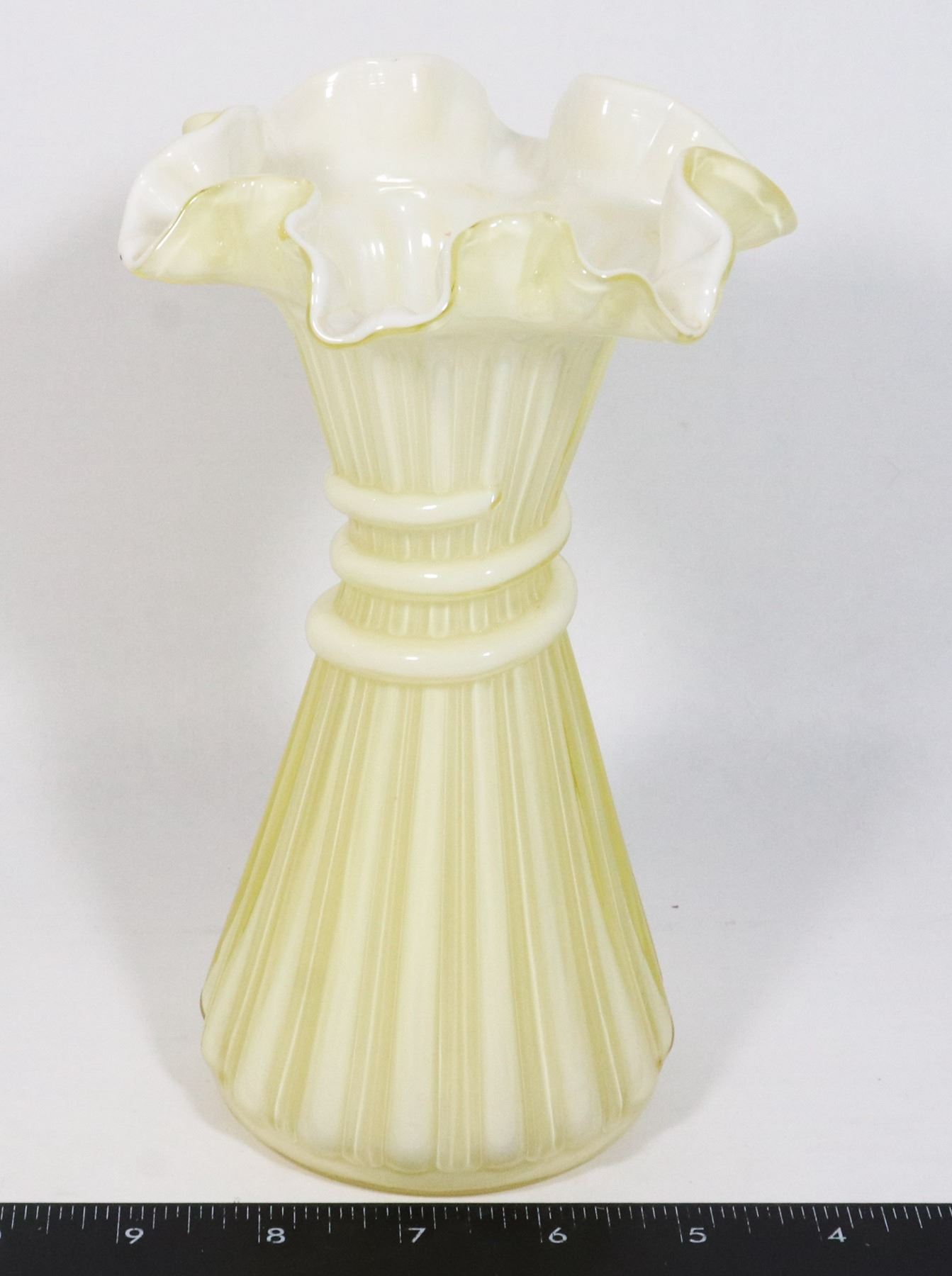 WHITE CASED - 7 3/4" RUFFLED AND SNAKE-WRAP