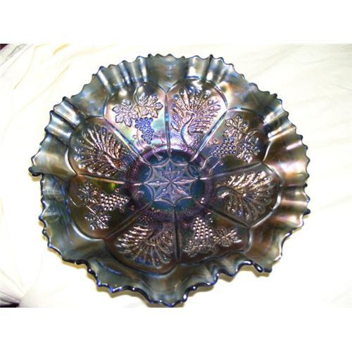 <tr><td>Title:FENTON PEACOCK & GRAPE BLUE ICE CREAM BOWL</td></tr>