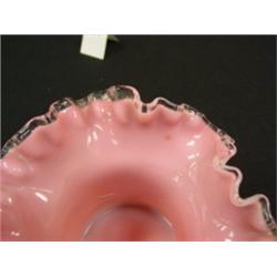Fenton Peach Crest vase. Circa 1940. 5" with ruffled, crimped edge. No. 1924. Condition: Very good with one tiny factory imperfection.