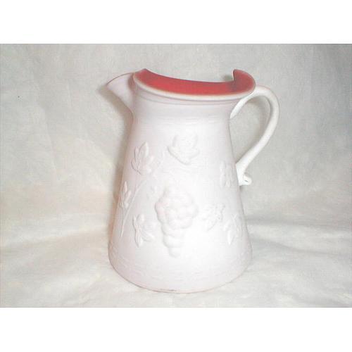 FOR SALE IS A BEAUTIFUL FENTON RED AND WHITE SATIN PITCHER THAT IS IN VERY GOOD CONDITION WITH NO CHIPS, CRACKS OR REPAIRS. THIS PITCHER MEASURES 5 3/4 IN. TALL AND 5 IN. IN DIAMETER AND HAS A WHITE SATIN EXTERIOR WITH GRAPES AND LEAVES AND A RED SATIN INTERIOR FINISH.