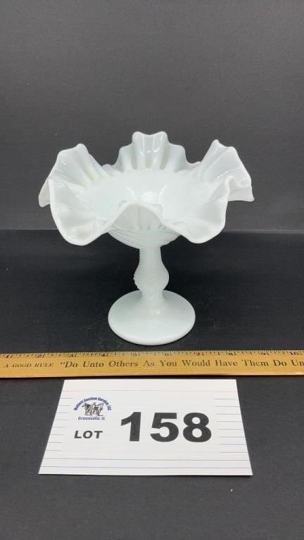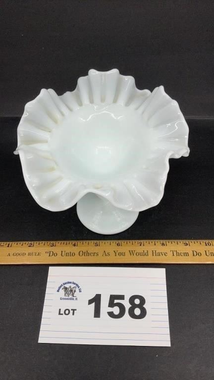 FENTON RUFFLED, SWIRL MILK GLASS CANDY DISH 6 in