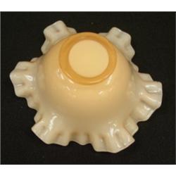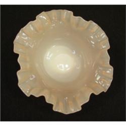 FENTON Rose Overlay bowl. No. 203. Crimped and ruffled rim. 7" in diameter. Condition: Excellent