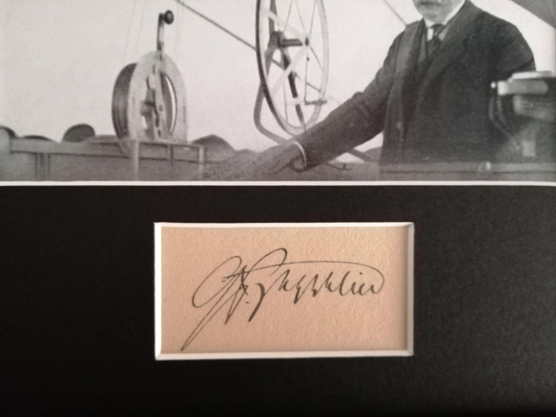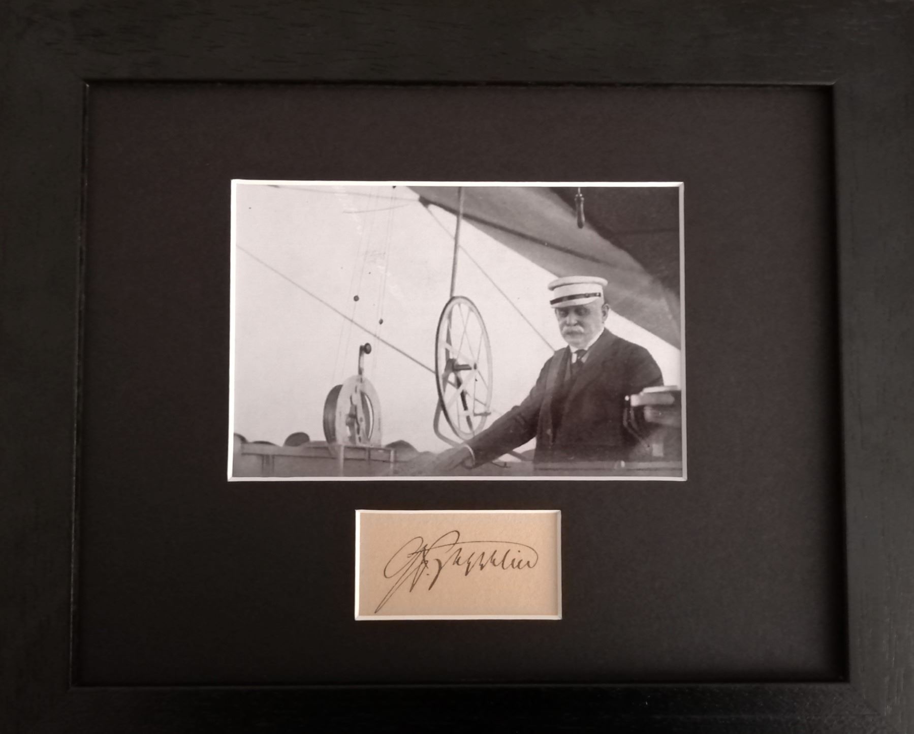 Ferdinand Adolf Heinrich August Graf von Zeppelin was a German general and later inventor of the Zeppelin rigid airships; he founded the company Luftschiffbau Zeppelin. His autograph cutting is mounted and framed in a wooden frame and supplied with coa.