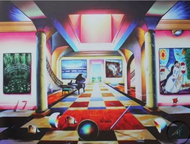 FERJO MELTING TIME ACROSS FROM THE BRIDGE Medium: Serigraph on Paper Limited Edition: 350 Signature: Hand-signed by the artist at the bottom of the image Size: Approximately 12" x 16" Framed: Unframed on Unstretched Canvas Details: This work comes with a Certificate of Authenticity Biography: - Biography: Ferjo (b. 1946 - Fernando de Jesus Oliveira) is Brazilian, but lives in the U.S. now. A master of many different styles, he has become known for his work in surrealism. Dali and Magritte would be proud of this follower of theirs. Whether he is painting a room interior, complete with floating objects, or a marina scene his use of colors and lines is flawless. - Ferjo originals have sold for more than $100,000.00. - Warranty: Item GUARANTEED to be as described
