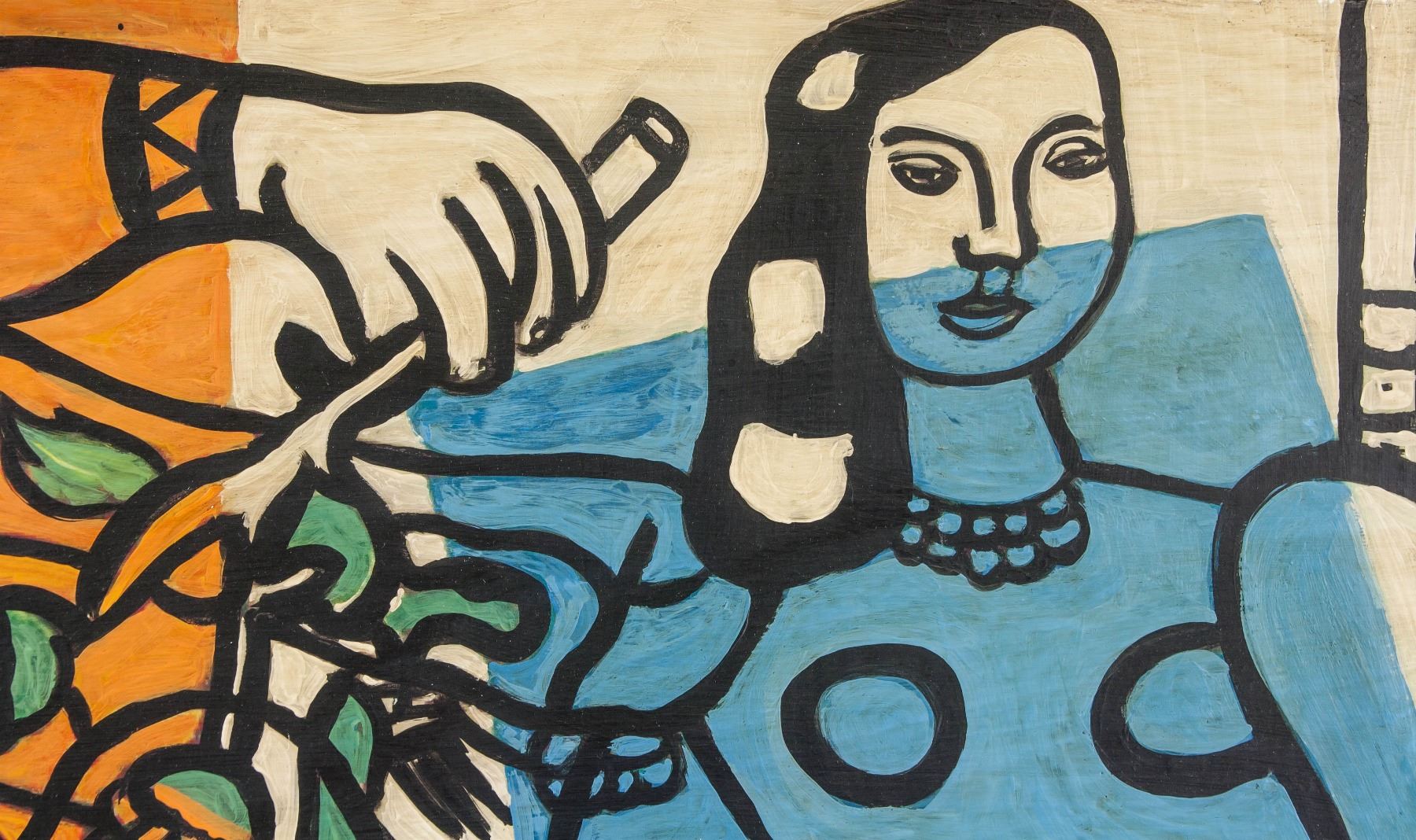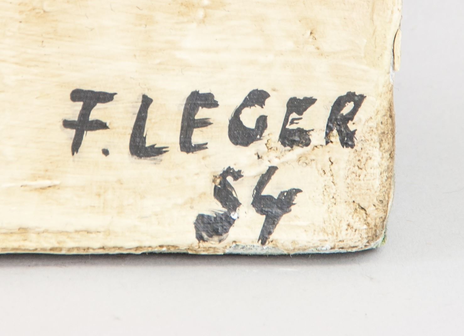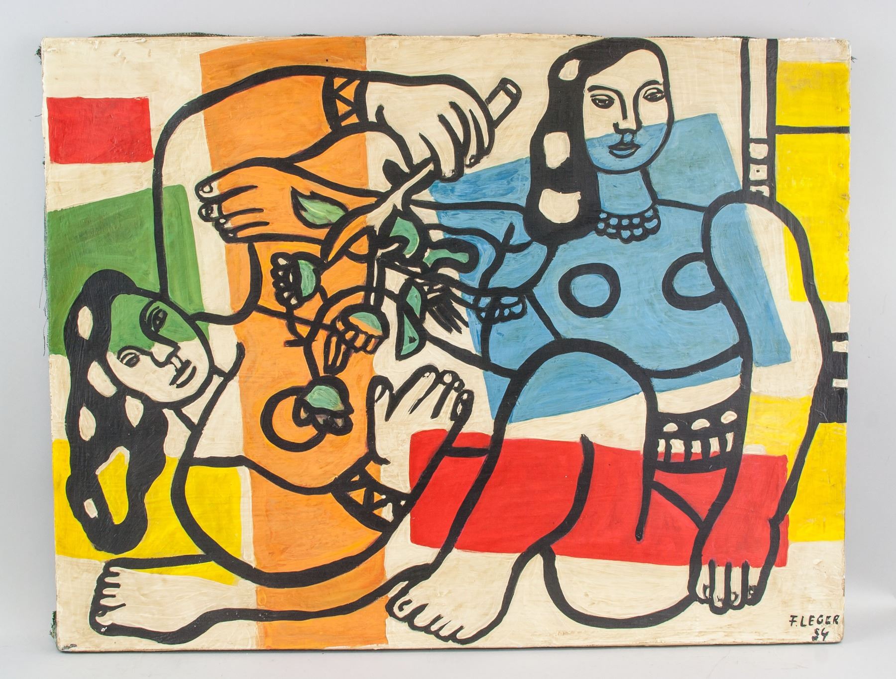 Oil on canvas framed. Featuring female nudes in cubism style. Signed and attr. Fernand Léger (French 1881-1955). Signature on lower right corner. 20.5 x 27 in. (52.1 x 68.6 cm). Though Fernand Leger built his reputation as a Cubist, his style varied considerably from decade to decade, fluctuating between figuration and abstraction and showing influence from a wide range of sources. Léger worked in a variety of media including paint, ceramic, film, theater and dance sets, glass, print, and book arts. While his style varied, his work was consistently graphic, favoring primary colors, pattern, and bold form.