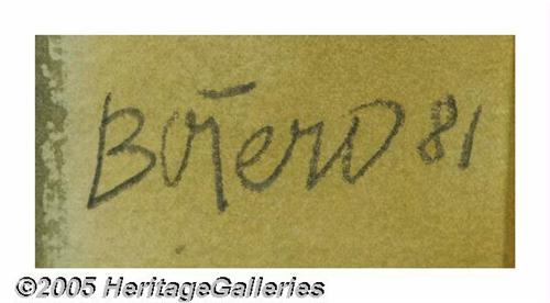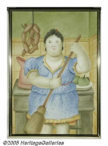 <B>FERNANDO BOTERO (Columbian b. 1932)</B></I><BR>Woman in the Kitchen, 1981<BR>Watercolor on paper<BR>63in. x 43.5in.<BR>Signed and dated lower right<BR>Provenance:Christie's NY, 1984<BR><BR>Condition Report: Overall excellent condition.<BR><BR>David Dike: Excellent condition. Agree with description, condition and value estimate.<BR>Brian Roughton: No problem with authenticity. Condition as noted.<BR>