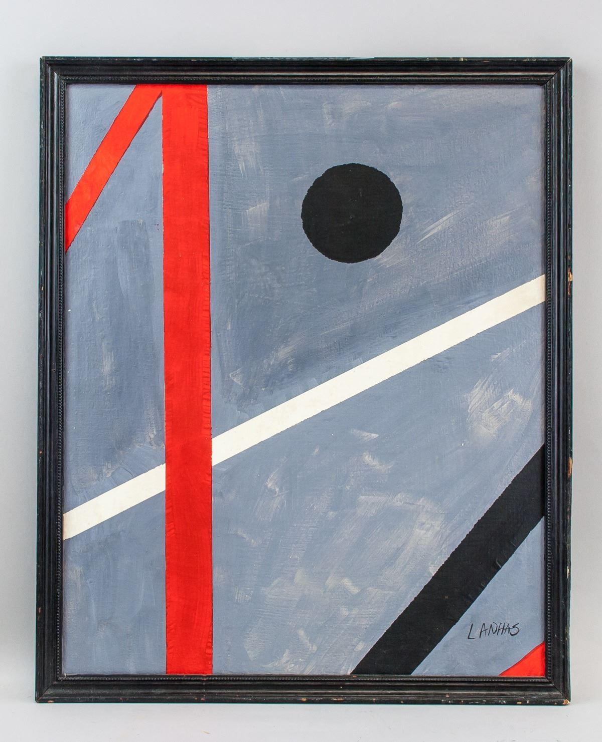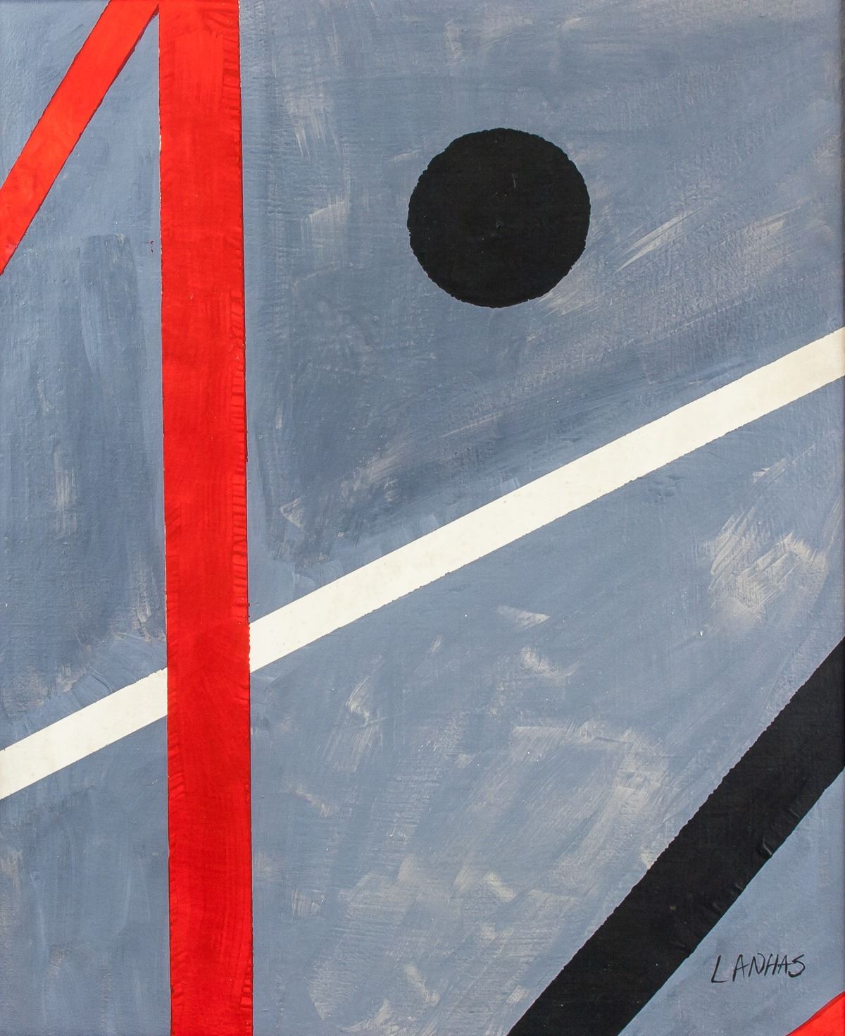 Oil on canvas. Featuring an abstract expressionist composition. Signed and attr. Fernando Lanhas (Portuguese, 1923-2012) on the lower right corner. 45.5 x 37.5 cm (17.9 x 14.8 inches). Lanhas was born and died in Porto. He studied architecture but became known as the leading name in Portuguese abstract painting. He started painting in 1944, influenced by music, astronomy, and the international abstract movement. Since then, he's been one of the most innovative and original Portuguese painters. PROVENANCE: Southern Ontario estate