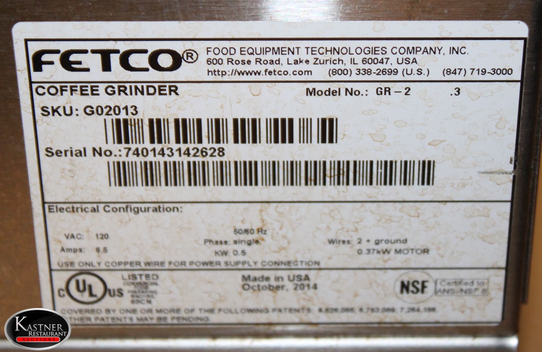 MODEL # GR-2.3, 120 VAC, 6.5 AMPS, 50 / 60 HZ SINGLE PHASE, WIRE 2 + GROUND, 0.5 KW 9" X 15" X 29"