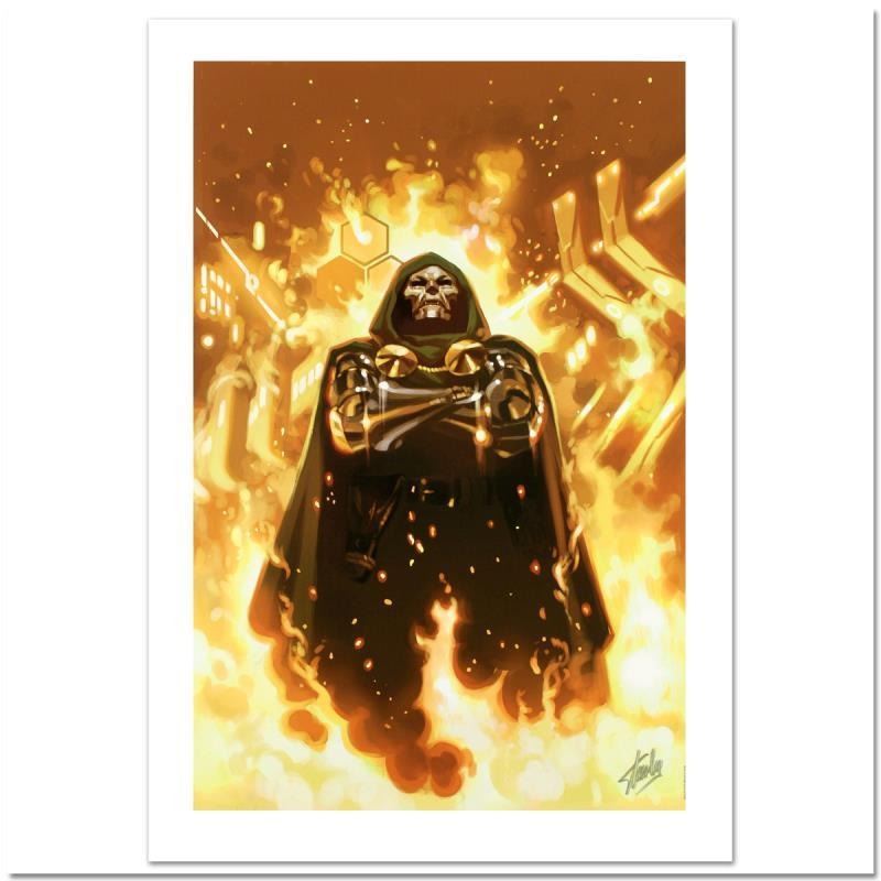 "FF #2" is a limited edition giclee on canvas with art by Daniel Acuna. Officially licensed by Marvel, this piece is numbered 3/99 and hand signed by creative legend Stan Lee (1922-2018). The piece comes with a certificate of authenticity. Measures approx